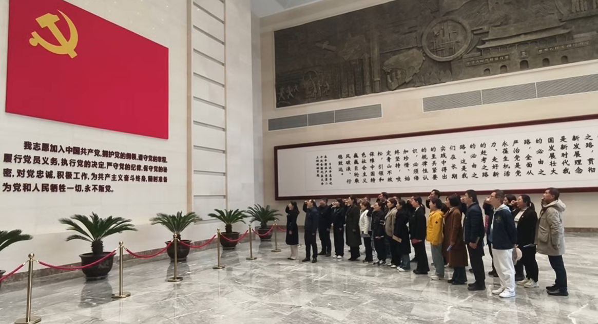 参观结束后,全体党员教师在教育馆大厅整齐列队,面向鲜红的党旗,在党委书记李夏慧的带领下,举起右拳庄严宣誓,铿锵有力的誓言回荡在大厅内,不仅是对初心使命的重温,更是对廉洁从教的郑重承诺。